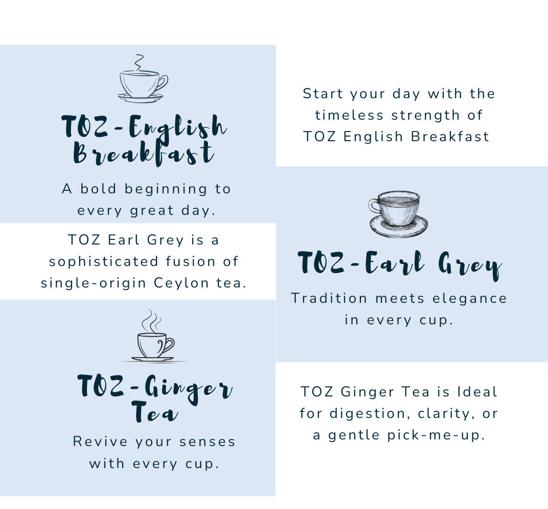 TOZ is a premium Ceylon tea brand crafted for Australia’s conscious tea lovers. TOZ brings you the finest handpicked tea leaves, sourced ethically and sustainably from pristine gardens. We are committed to preserving nature while delivering an authentic and aromatic experience in every sip.